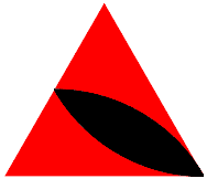 - Например, двуугольник, образованный пересечением двух одинаковых кругов с углом при вершине, равным , является ротором равностороннего треугольника. Сверлом такой формы в принципе можно было бы сверлить треугольные отверстия без сглаженных углов.