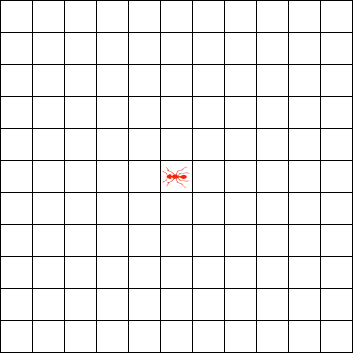 Рассмотрим бесконечную плоскость, разбитую на клетки, покрашенные некоторым образом в чёрный и белый цвет. Пусть в одной из клеток находится «муравей», который на каждом шаге может двигаться в одном из четырёх направлений в клетку, соседнюю по стороне. Муравей движется согласно следующим правилам[1][3]:
