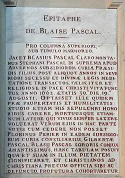 19 августа 1662 года после мучительной продолжительной болезни Блез Паскаль скончался. Похоронен в приходской церкви Парижа Сент-Этьен-дю-Мон.