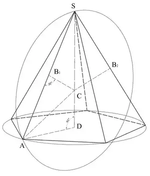 - диагональное сечение пирамиды — сечение пирамиды, проходящее через её вершину и диагональ основания.