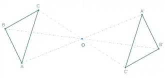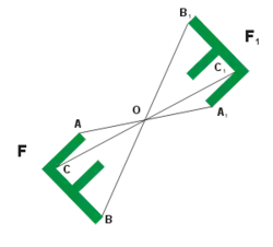 Центра́льной симме́трией (иногда центра́льной инве́рсией) относительно точки A называют преобразование пространства, переводящее точку X в такую точку X′, что A — середина отрезка XX′. Центральная симметрия с центром в точке A обычно обозначается через , в то время как обозначение можно перепутать с осевой симметрией. Фигура называется симметричной относительно точки A, если для каждой точки фигуры симметричная ей точка относительно точки A также принадлежит этой фигуре. Точка A называется центром симметрии фигуры. Говорят также, что фигура обладает центральной симметрией. Другие названия этого преобразования — симметрия с центром A. Центральная симметрия в планиметрии является частным случаем поворота, точнее, является поворотом на 180 градусов.