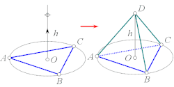 2. Существует общее правило преобразования симплексов низшей размерности в симплексы высшей размерности. Оно заключается в том, что из некоторой точки симплекса проводят луч, не лежащий в аффинной оболочке данного симплекса, и на этом луче выбирают новую вершину, которую соединяют рёбрами со всеми вершинами исходного симплекса.