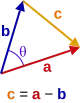 Теорема косинусов легко выводится с использованием скалярного произведения. Пусть на сторонах треугольника находятся векторы a, b и c, первые два из которых образуют угол θ, как показано в изображении справа. Тогда, следуя свойствам и определению скалярного произведения через косинус: