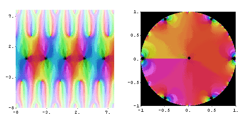 Тета-функция с различными номами. Чёрная точка на правом рисунке показывает, как меняется q при изменении Тета-функция с различными номами. Чёрная точка на правом рисунке показывает, как меняется q при изменении
