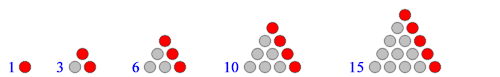 - 1, 3, 6, 10, 15, 21, 28, 36, 45, 55, 66, 78, 91, 105, 120, 136, 153, 171, 190, 210 …, … (последовательность A000217 в OEIS)