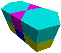 Шестиугольная призма — призма с шестиугольным основанием. У этого многогранника 8 граней, 18 рёбер и 12 вершин[1].
