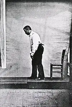 ![]() Пациент с болезнью Паркинсона. Рисунок из руководства 1886 года Уильяма Говерса | |