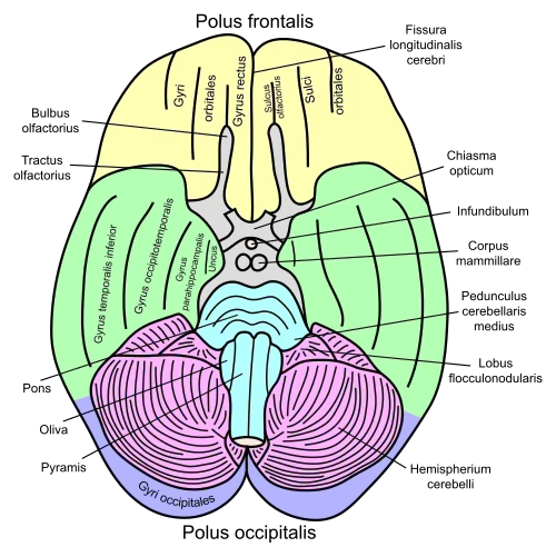 Головной мозг высших позвоночных организмов состоит из ряда структур: коры больших полушарий, базальных ганглиев, таламуса, мозжечка, ствола мозга. Эти структуры соединены между собой нервными волокнами (проводящие пути). Часть мозга, состоящая преимущественно из клеток, называется серым веществом, из нервных волокон — белым веществом. Белый цвет — это цвет миелина, вещества, покрывающего волокна. Демиелинизация волокон приводит к тяжелым нарушениям в головном мозге (рассеянный склероз).