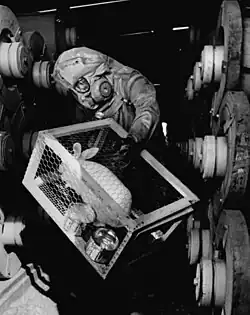 - Разработкой бинарного (двухкомпонентного) химического оружия, в котором вещества-предшественники хранятся отдельно друг от друга в одном снаряде. В таком снаряде собственно смешивание реагентов и синтез БОВ осуществляется непосредственно перед запуском или уже в полёте. Такой подход вдвойне выгоден, поскольку решается проблема короткого срока жизни и существенно возрастает безопасность при хранении и транспортировке боеприпасов.
