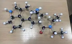ЛСД имеет два лабильных протона в третичных стереогенных положениях С5 и С8, что делает эти центры склонными к эпимеризации. Протон C8 более лабилен из-за присоединения карбоксамида, выводящего электроны, но удалению хирального протона в положении C5 (который когда-то также был альфа-протоном исходной молекулы триптофана) способствует индуктивное удаление азота и делокализация электронов pi с индольным кольцом.