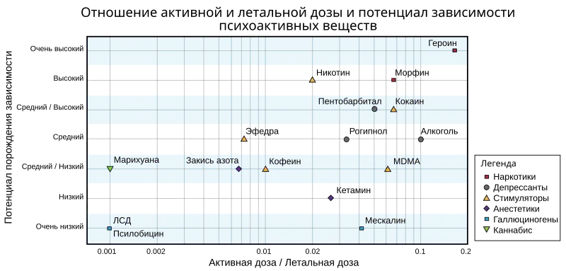 - ↑ 1 2 Lachenmeier D. W., Rehm J. Comparative risk assessment of alcohol, tobacco, cannabis and other illicit drugs using the margin of exposure approach (англ.) // Scientific reports. — 2015. — Vol. 5. — P. 8126. — ISSN 2045-2322. — doi:10.1038/srep08126. — PMID 25634572.
