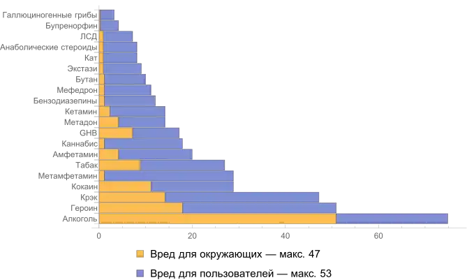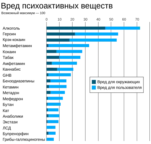 - ↑ Эксперты пришли к выводу, что алкоголь вреднее героина. Русская служба Би-би-си (1 ноября 2010). Дата обращения: 11 августа 2013. Архивировано 13 августа 2013 года.