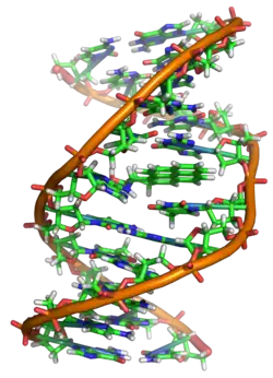 Двухцепочечная молекула ДНК закручена по винтовой линии. Структура молекулы ДНК в целом получила традиционное, но ошибочное название «двойной спирали»: на самом деле, она является «двойным винтом». Винтовая линия может быть правой (A- и B-формы ДНК) или левой (Z-форма ДНК)[2]. Формы ДНК также различаются по диаметру, количеству оснований на виток спирали и шагу спирали[3][4] .