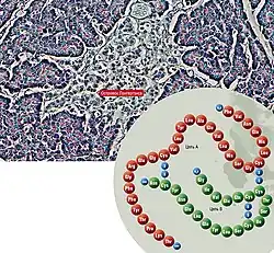В 1869 году в Берлине 22-летний студент-медик Пауль Лангерганс, изучая с помощью нового микроскопа строение поджелудочной железы, обратил внимание на ранее неизвестные клетки, образующие группы, которые были равномерно распределены по всей железе. Назначение этих «маленьких кучек клеток», впоследствии известных как «островки Лангерганса», было непонятно, но позднее Эдуард Лагус показал, что в них образуется секрет, который играет роль в регуляции пищеварения.