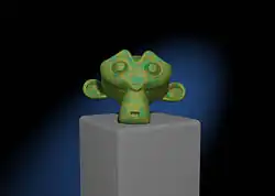 Стилизованная голова обезьянки, «Suzanne» является альтернативой обычных тестовых моделей таких как Чайник Юта и Стенфордский кролик. Низкополигональная модель, состоящая всего из 500 элементов. «Suzanne» часто используется для быстрой и простой проверки материалов, текстур, установок света, а также для создания забавных картинок.