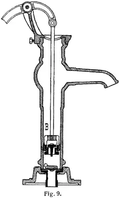 Около 1650 года немецкий учёный Отто фон Герике изобрёл первый вакуумный насос (поршневой цилиндр с водяным уплотнением), позволивший легко откачивать воздух из герметичных ёмкостей и экспериментировать с вакуумом[16]. Насос, названный автором antlia pneumatica, был ещё очень далёк от совершенства и требовал более трёх человек для манипуляций с поршнем и кранами, погружёнными в воду, для лучшей изоляции образующейся пустоты от наружного воздуха. Однако с его помощью Герике сумел продемонстрировать многие свойства вакуума, в частности, поставив знаменитый опыт с Магдебургскими полушариями. Герике создал также водяной барометр, по принципу действия аналогичный ртутному барометру Торричелли, хотя из-за меньшей плотности воды по сравнению с ртутью высота водяного столба, уравновешивающего атмосферное давление, в 13,6 раз больше — около 10 метров. Герике впервые выяснил, что вакуум не проводит звук и что горение в нём прекращается[17].