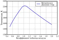 Ламинарное пламя может распространяться только в смеси, состав которой не выходит за границы диапазона так называемых концентрационных пределов. Нижний и верхний концентрационные пределы соответствуют минимальному и максимальному коэффициенту избытка топлива, при котором пламя ещё может распространяться по смеси. Для метана в воздухе они составляют примерно 5 и 15 объёмных процентов[47]. Взрывы бытового газа возникают тогда, когда в плохо вентилируемом помещении превышается нижний концентрационный предел, и из-за искры или другого источника смесь воспламеняется. Этот же эффект приводит к взрывам метана в шахтах.