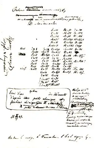 Д. И. Менделеев. Рукопись «Опыта системы элементов, основанной на их атомном весе и химическом сходстве». 17 февраля 1869 года (1 марта 1869 года)