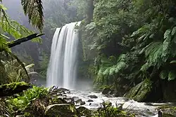 Река — природный водный поток (водоток)[29], текущий в выработанном им углублении — постоянном естественном русле — и питающийся за счёт поверхностного и подземного стоков с их бассейнов. Обычно река впадает в океан, море, озеро или другую реку, но в некоторых случаях она может теряться в песках или болотах, а также полностью пересыхать, не достигнув другого водоёма. Ручей, протока, родник, источник, ключ считаются малыми реками. Река является частью гидрологического цикла. Вода в реках, как правило, собирается из осадков посредством поверхностного стока, таяния естественного льда и снежных покровов, а также из подземных вод и родников.