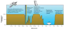 Непрозрачность атмосферы Земли для различных длин волн электромагнитного излучения, включая радиоволны