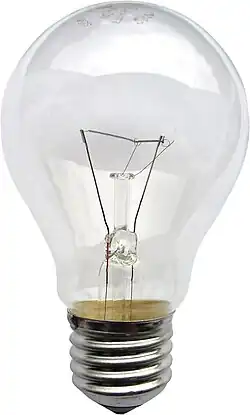 Использование электричества обеспечивает довольно удобный способ передачи энергии, и в силу этого оно было адаптировано для существенного и по сей день растущего спектра практических приложений[27]. Одним из первых общедоступных способов применения электричества было освещение; условия для этого оказались созданы после изобретения лампы накаливания в 1870-х годах. Первая лампа накаливания представляла собой замкнутый сосуд без воздуха с угольным стержнем.[28]. Хотя с электрификацией были сопряжены свои риски, замена открытого огня на электрическое освещение в значительной степени сократила количество возгораний в быту и на производстве[29].
