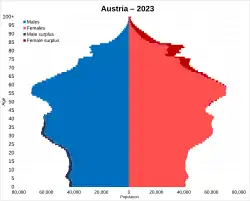- ↑ Population at beginning of year/quarter (брит. англ.). STATISTICS AUSTRIA. Дата обращения: 27 июля 2025.