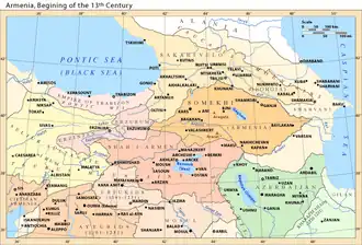 С конца XII века войска усилившегося Грузинского царства под началом армянского княжества Закарянов и при поддержке местного армянского населения освобождают Восточную Армению от власти тюрок-сельджуков. Армянское княжество Закарянов (включающее междуречье Куры и Аракса — запад нынешнего Азербайджана) под сюзеренитетом Грузии просуществовало до нашествия монголов в середине XIII века.