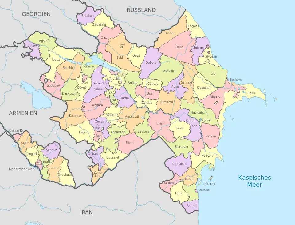 Подразделяется на 67 районов, 11 городов республиканского подчинения и 1 автономную республику — Нахичеванскую Автономную Республику. Часть территории Азербайджана — эксклавы Кярки, Бархударлы-Софулу, Юхары-Аскипара — контролируется Арменией. Азербайджан контролирует часть территории Армении (анклав Арцвашен).