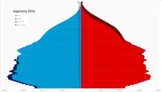 По состоянию на 2023 год, согласно оценкам всемирной книги фактов ЦРУ, по численности населения Аргентина — 33-е государство в мире (46 621 847 человек)[7]. По вероисповеданию большинство населения на 2022 год составляли католики[8]. Государственный язык — испанский; ограниченно используются также местные индейские языки. Это крупнейшая по площади в мире из испаноязычных стран[9].
