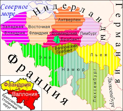 | Крупнейшие города | Антверпен, Гент, Шарлеруа, Льеж, Брюссель, Брюгге, Намюр | ||||