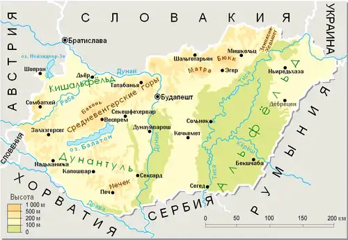 - ↑ Венгрия // Энциклопедический географический словарь / отв. редакторы Е. В. Варавина и др. — М.: Рипол-классик, 2011. — С. 135. — (Словари нового века). — 5000 экз. — ISBN 978-5-386-03063-6.
