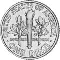- 10 центов (дайм — в отличие от других указанных в скобках наименований, это официальное название номинала);