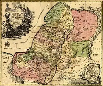 - Резолюция Генеральной Ассамблеи ООН № 181/11 от 29 ноября 1947 года, которая не была признана арабскими странами и не была ими выполнена. Документ предусматривал включение в еврейское государство Восточной Галилеи, Изреельской долины, большей части приморской равнины, пустыни Негев; в арабское государство — Западной Галилеи, гор Иудеи и Самарии (за исключением Иерусалима), части приморской равнины от Ашдода до границы с Египтом. Иерусалим и Вифлеем должны были стать территориями под международным контролем[16]. Площадь еврейского государства, определённая этим решением Генеральной Ассамблеи, равна 14 тыс. км²[19][20], или 14,1 тыс. км²[21][22][23].