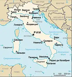 | Крупнейшие города | Рим, Милан, Неаполь, Турин, Палермо, Генуя, Венеция, Болонья, Флоренция, Бари, Катания, Верона, Триест, Парма | ||||
