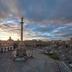 После обретения Украиной независимости власти распорядились брать за основу украинские названия всех имён собственных при их передаче «средствами английского языка»[41]. Это коснулось, в частности, и английского названия Киева — в результате следования нормам транслитерации украинского алфавита латиницей появилось слово Kyiv. В августе 2012 года Конференция ООН по стандартизации географических названий приняла решение изменить официальное правило написания названия украинской столицы с Kiev на Kyiv[42][43]. В июне 2019 года Совет США по географическим названиям, основой которого пользуются множество международных организаций (в частности, IATA[44]), принял такое же решение[45][46]. В июле 2019 года вариант названия Киева на латинице был изменён также в документах ЮНЕСКО[47].