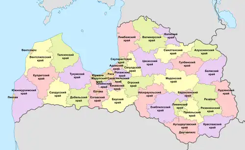 - ↑ Вступает в силу новая административно-территориальная реформа: в Латвии 43 самоуправления. rus.lsm.lv. Дата обращения: 9 августа 2023. Архивировано 10 августа 2023 года.