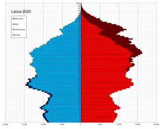 По оценке на 1 января 2024 года, в Латвии насчитывалось 1 871 882 жителя (что на 11 126 человек меньше, чем на начало 2023 года)[3].
