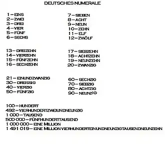 - ↑ Немецкий язык - это просто. Числительное (Zahlwort). Дата обращения: 6 ноября 2011. Архивировано 16 октября 2011 года.
