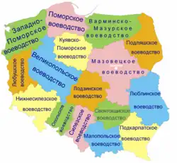 Подразделяется на 16 воеводств, которые, в свою очередь, делятся на повяты (уезды) и гмины (волости).