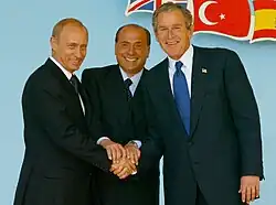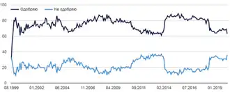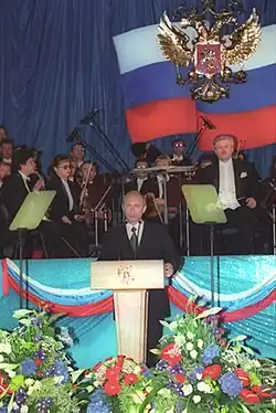 Влади́мир Влади́мирович Пу́тин (род. 7 октября 1952, Ленинград, СССР) — российский государственный и политический деятель. Действующий президент Российской Федерации, председатель Государственного Совета Российской Федерации и Совета Безопасности Российской Федерации; Верховный главнокомандующий Вооружёнными силами Российской Федерации с 7 мая 2012 года. Ранее занимал должность президента с 7 мая 2000 по 7 мая 2008 года, также в 1999—2000 и 2008—2012 годах занимал должность председателя правительства Российской Федерации. Фактически руководит Россией, согласно разным оценкам, с 1999[5] или с 2000 года[6].