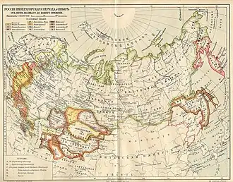![]() Территория Российской империи по состоянию на 1905—1914 годы Утраченные территории Неформальная сфера влияния |