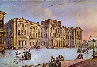 В результате переворота 1741 года малолетний император Иван VI и его родственники отправлены в заключение, и к власти пришла императрица Елизавета Петровна. Впервые за многие столетия и вопреки мнению политической элиты императрицей в России введён один из первых в мире мораториев на смертную казнь, действовавший около 20 лет, высшим наказанием стала вечная каторга[32][33][34]. Русская армия успешно воевала против Пруссии в Семилетней войне (1756—1763 гг.). 12 (23) августа 1759 года — победа русской армии в Кунерсдорфском сражении. Семилетняя война показывает странам Западной Европы высокую боеспособность и выучку русской армии. При ней был открыт Московский университет (1755 г.), обустроены императорские резиденции (Зимний дворец, Царское Село) в стиле елизаветинского барокко. В. Н. Татищевым создаётся первый капитальный труд по русской истории — «История Российская»[35]. На Нижнетагильском заводе Демидовых была построена самая большая в мире домна[35].