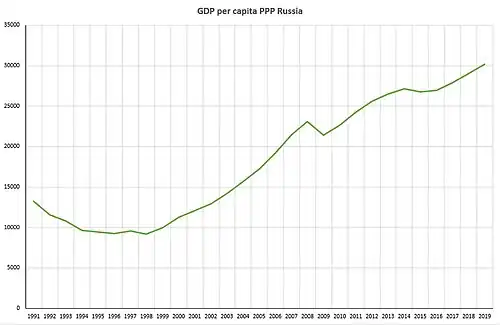 Объём ВВП (номинальный) за 2021 год составил приблизительно 1,8 трлн долларов, что делает Россию 11-й по объёму экономикой в мире (при пересчёте по ППС — 6-й).