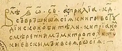Первое письменное упоминание названия «Росия» на греческом языке (греч. Ρωσία) датировано серединой X века и встречается в сочинениях византийского императора Константина Багрянородного «О церемониях» и «Об управлении империей» для обозначения Руси[41]. В кириллической записи слово «Росия» (Рωсїѧ) было впервые употреблено 24 апреля 1387 года[42] в собственноручной приписке митрополита Киприана к переписанной им «Лествице» Иоанна Синайского, где он именует себя «митрополитом Кыевскым и всея Росия»[43]. В XV—XVI веках эллинизированное название «Росия» закрепилось за той частью русских земель, которая была объединена в единое государство под началом Великого княжества Московского: так, Иоанн де Галонифонтибус использует это название в указанном значении в 1404 году[44], а Иван III назван «российским государем» в грамоте крымского хана в 1474 году[45].