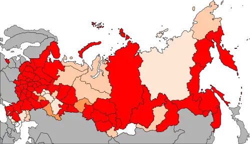 | Крупнейшие города | Москва, Санкт-Петербург, Новосибирск, Екатеринбург, Казань, Красноярск, Нижний Новгород, Челябинск, Уфа, Краснодар, Самара, Ростов-на-Дону, Омск, Воронеж, Пермь, Волгоград | ||||
