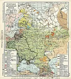 | Этнические группы | севернорусская, южнорусская, казаки, сибиряки и другие[52] |