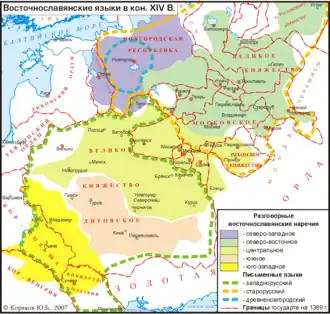Консолидация древнерусской народности была прервана распадом Древнерусского государства и татаро-монгольским нашествием, а объединение прежних русских княжеств под властью крупных государств (Великое княжество Московское, Великое княжество Литовское и позже Речь Посполитая) заложило основу для дальнейшего распада её на три современных народа: русских, украинцев и белорусов[57].