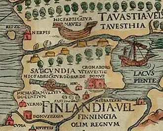 - предполагается, что некогда существовала местность под названием Suomaa (фин. suo «болото», maa «земля»; дословно: «земля болот»[18]), и переселенцы из этой области перенесли название своей родины в юго-западную Финляндию, которая стала называться Suomi;