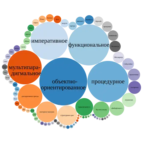 Помимо самих языков программирования, Викиданные описывают также и парадигмы программирования. С помощью скрипта https://w.wiki/oLg и иллюстрации видно, что по числу языков программирования самой популярной является объектно-ориентированное программирование (399 языков на 2020 год), следом идут процедурные языки (297 языков на 2020 год). Стоит заметить, что мультипарадигменное программирование (программирование с одновременным использованием множества парадигм) также представлено большим числом языков программирования.