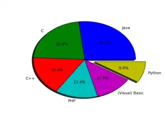 labels = ['Java', 'C', 'C++', 'PHP', '(Visual) Basic', 'Python']